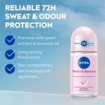 NIVEA roll-on deodorant (50ml) with pearl extracts & avocado oil. 48-hour protection, floral scent, 0% alcohol. Dermatologist approved. For women. All skin types.